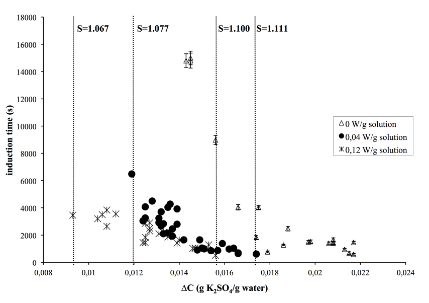 Les ultrasons ont un effet significatif sur le temps d'induction, en particulier pour les faibles sursaturations. Ils permettent de le diminuer.