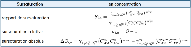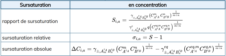 Écrire l'expression de la sursaturation, avec et sans coefficients d'activité.