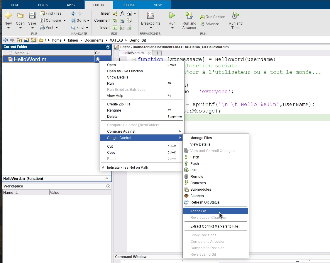 utiliser git avec MATLAB