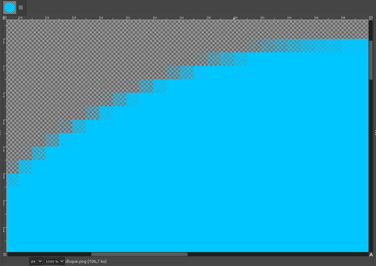 Si l'on agrandit fortement les deux images, en faisant un zoom à la frontière du disque, on voit bien apparaître un effet de pixellisation de l'image matricielle. À cette taille d'affichage, et pour cette définition de l'image matricielle, la résolution n'est plus suffisante.