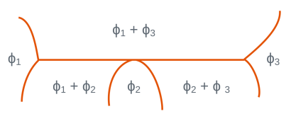 Local configuration of the diagram | \(\phi_1\) | \(\phi_2\) | \(\phi_3\) | Reaction or transformation |