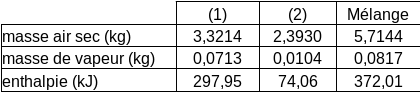 Bilan matière : le mélange contiendra tout l'air et toute la vapeur d'eau contenus dans les airs (1) et (2).